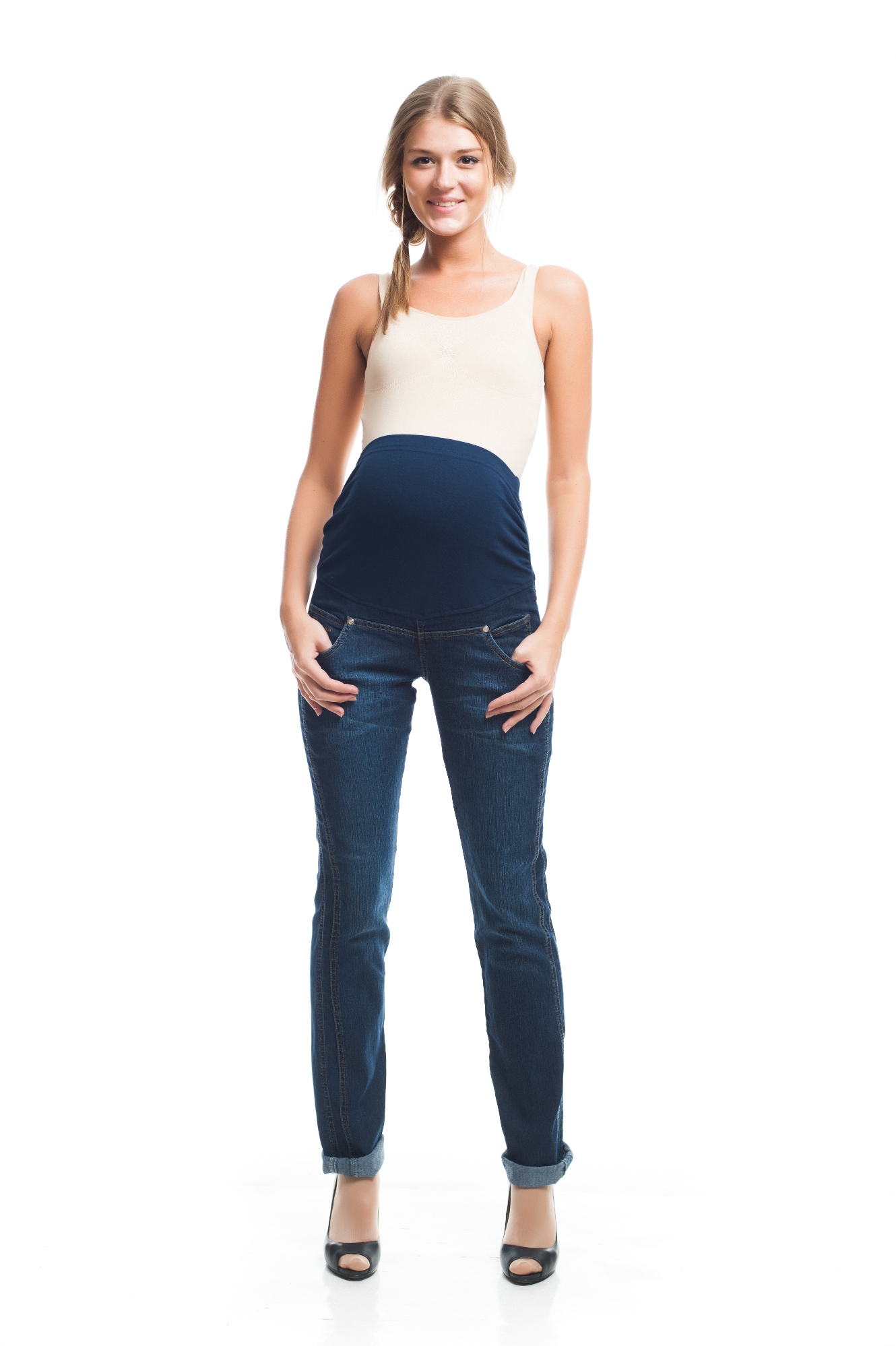 2486.9035 р.40-176 брюки джинс.зауженного силуэта с высокой трик.круговой кокеткой синий 176-80-88 (XXS) Хлопок 98%; Лайкра 2% 1 399,00