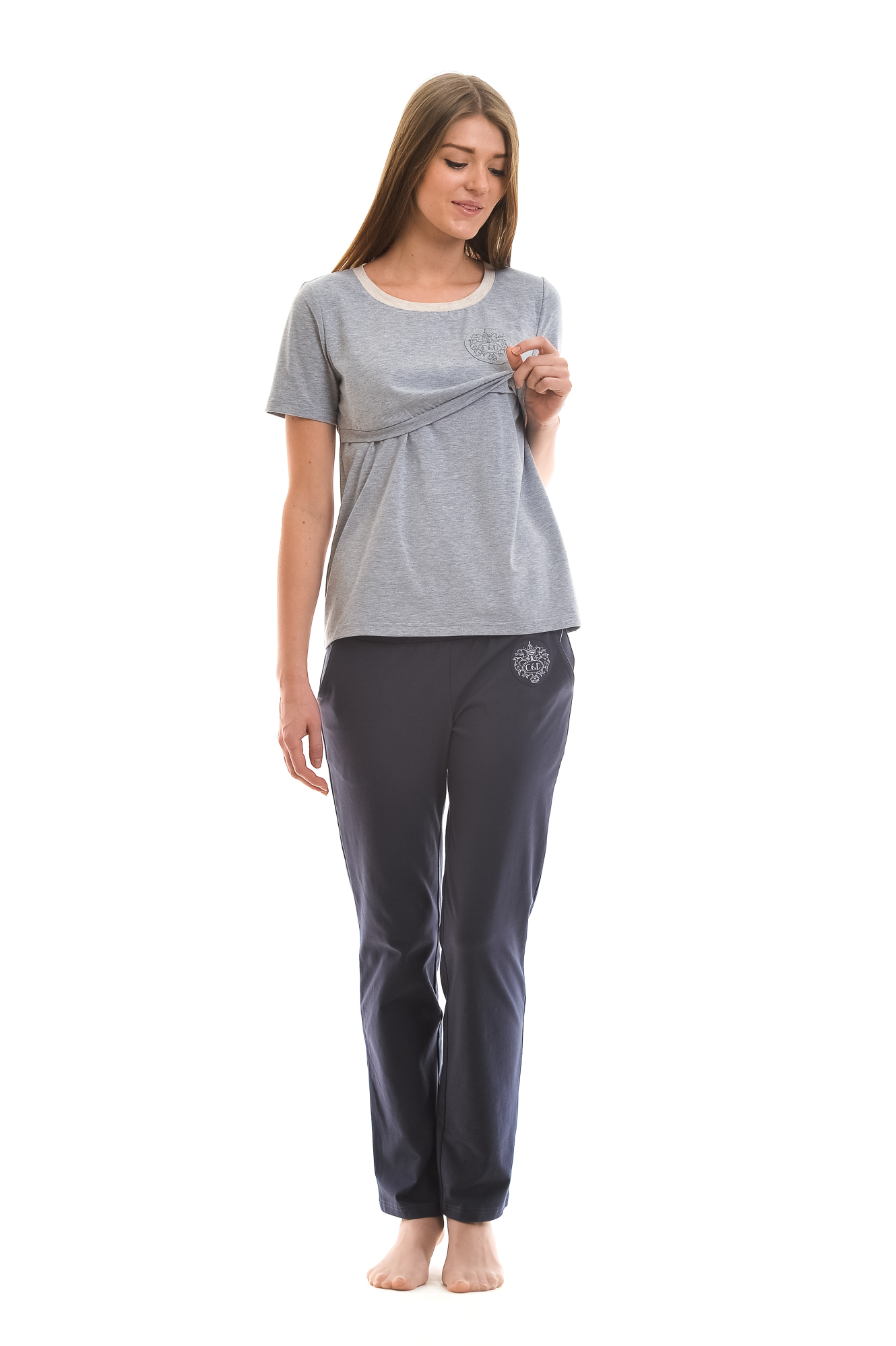 742.395Д р.46 блуза трик прям сил для корм серый меланж+беж меленж 170-92-100 (M) Хлопок 92%; Эластан 8% 859,00