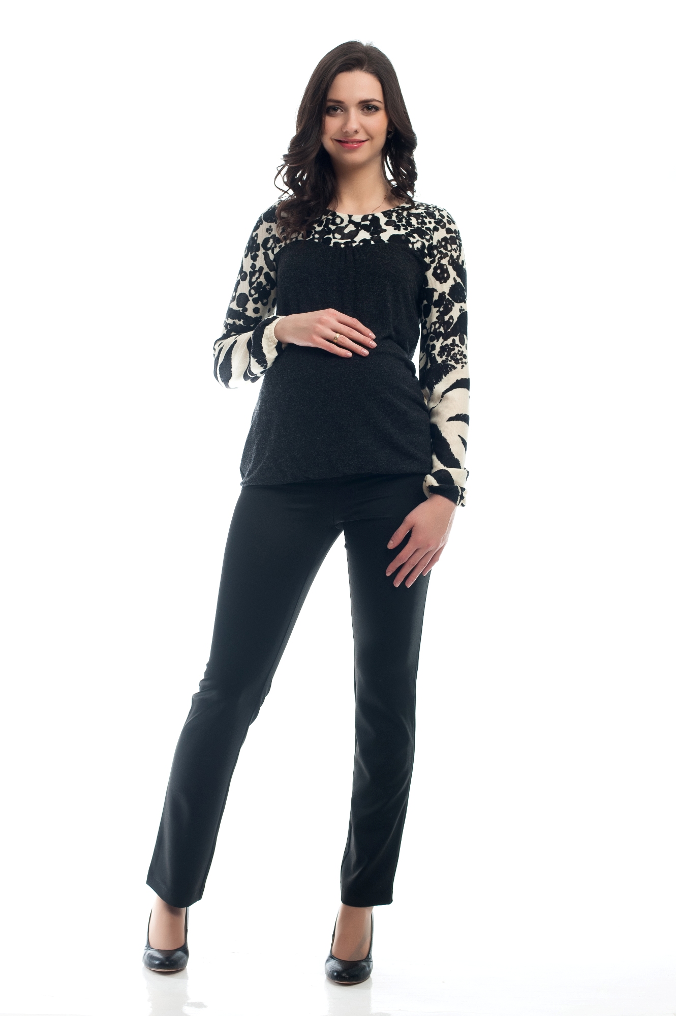 7315.3367 р.46 блуза трикотажная силуэта баллон комбинированная принт черно-белый + антрацит 170-92-100 (M) 999,00