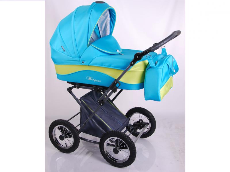 Коляска выполнена с использованием высокопрочных и практичных в уходе итальянских тканей.